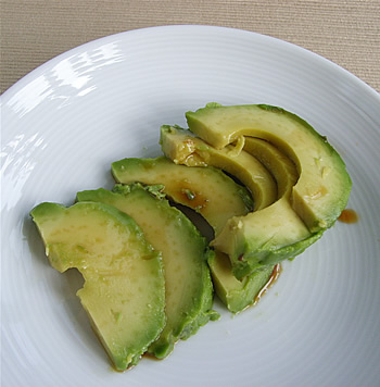 アボガドを薄切りにして、しょうゆを少々かけるだけ!