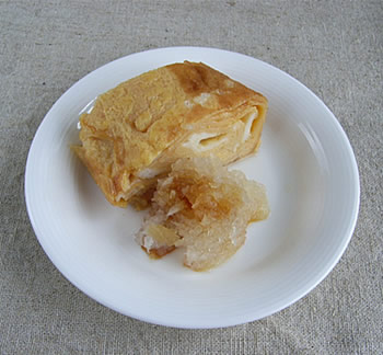 4.卵焼きを食べやすく切り、器に盛って、大根おろしを沿え、しょうゆをかける。