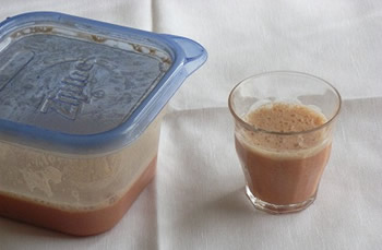 イラストレーターの赤星たみ子さんが、雑誌で紹介していた「豆乳ダイエット」。うちにはミキサー等はないので、ZIPLOCK等の密閉容器に、豆乳とトマトジュースを入れて、シェイクしました。
