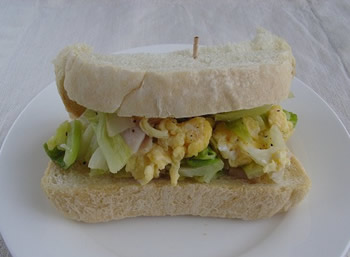 6.パンを焼いて、バターを塗ったら、5をはさんだら「いただきます!」