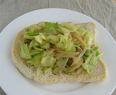 いつもの、キャベツのバター炒めに玉ねぎを入れてみた。