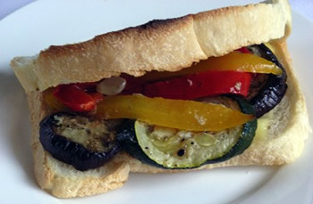 1.なす、ズッキーニはそれぞれ、1cm位の輪切りにする。パプリカは1cm幅に切る。