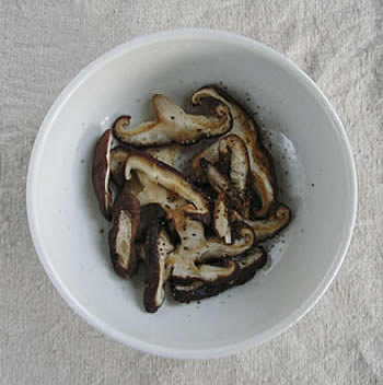 2.フライパンにオリーブ油少々入れ、しいたけをじっくり焼く。