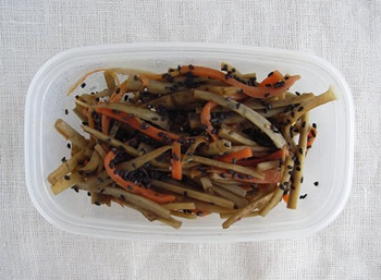薄味のきんぴらごぼう。薄味だから、ごはんがなくても、これだけでもじゃんじゃん食べられる。