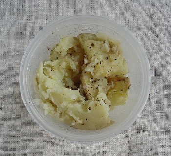 1.新じゃがは洗って、ポリ袋に入れたら、電子レンジで3~5分加熱する。(じゃがいもが大きければ切って下さい)
