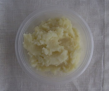 2.じゃがいもは皮をむいてゆでるか、皮ごとレンジしてチンして皮をむき、1と、コンビーフを混ぜながら、軽くつぶす。