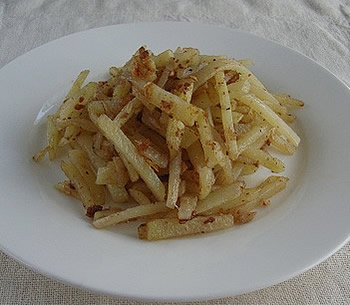 2.フライパンにサラダ油を熱し、じゃがいもが薄くきつね色になるまで炒める。
