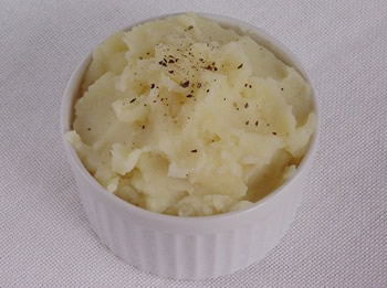 付け合せ用のマッシュポテト。でも塩、こしょうを多めにふれば、これだけでもいけちゃいますけどね。もっと味を濃くしたければ、牛乳の代わりに生クリームや、顆粒コンソメ等を入れてみてください。