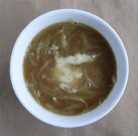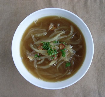 2.鍋にサラダ油を入れ、ベーコンと玉ねぎを弱火でいためる。玉ねぎがあめ色になるまでじっくりいためる。