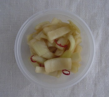 1.大根の皮は長さ4~5cm、幅1cmに切る。