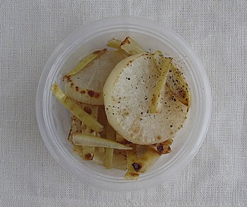 2.フライパンに油を熱し、1の大根を軽く焼き色がつくまで炒めて、塩をふる。(好みでこしょうを)