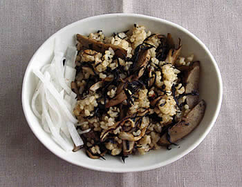 ごぼうとひじきのきんぴら(「ごぼう」のカテゴリー参照)と、生しいたけと、玄米ご飯を使ってチャーハンにしたものです。イマ一つインパクトにかけたのは、ごま油を少なめにしすぎたからかも・・・