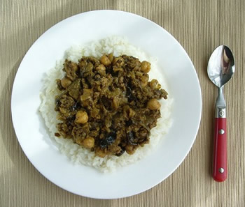 3.ウスターソース、トマトケチャップ、ナンプラー、豆板醤、ガラムマサラ、塩、こしょうを入れながら、その都度よく混ぜる。ひよこ豆を入れて、ふたをして中火。5分程蒸し煮にする。
