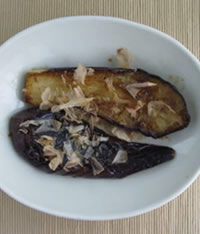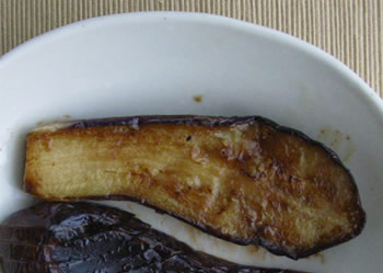 2.フライパンにごま油を熱し、なすの両面をこんがり焼く。