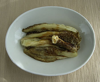 1.なすはさっと洗ってぬれたままオーブントースターに入れて、20~30分焼く。