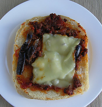 パンにバターを塗って、ソースとチーズをのせて、