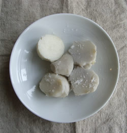 ゆでた里芋に、マヨネーズとすりごま、しょうゆ少々であえたものですが・・・
