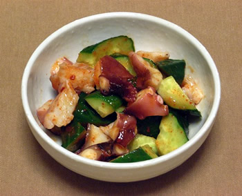 1.きゅうりは小さめの乱切りに、たこは小さめの一口大に切る。