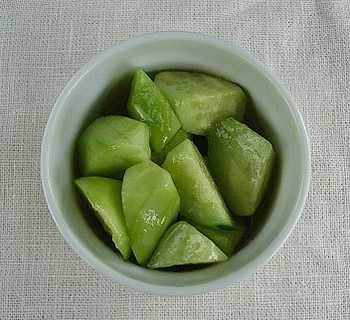 きゅうりがほんのり甘くなっておいしい。カレーの付け合せ等に合いそう。