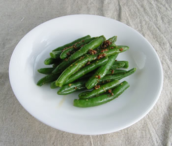 2.ボールにマスタードしょうゆの材料を混ぜ合わせ、いんげんを加えて全体をよくあえ、器に盛る。