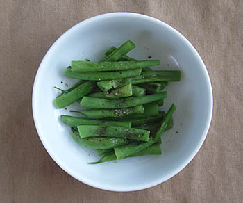 1.さやいんげんはへたを切り落とし、4cm長さに切る。