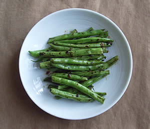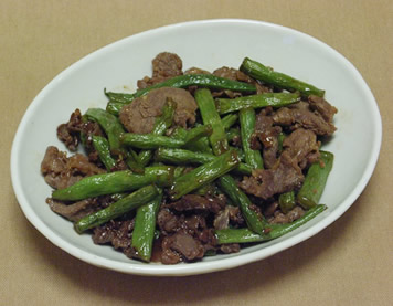 さやいんげんのシャキシャキ感を生かすため、ゆでずに生で炒めます。
