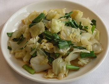 3.フライパンにサラダ油を熱し、キャベツを炒め、ウスターソースを入れる。