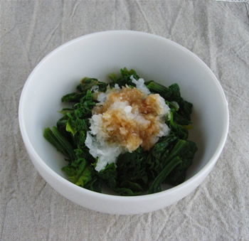 食べやすく切ったほうれん草と大根おろしを混ぜて器に盛り、しょうゆをかけて食べる。