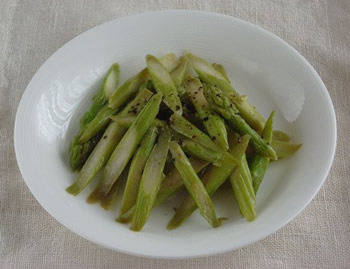 2.フライパンを熱して、サラダ油を入れ、アスパラガスをさっと炒める。