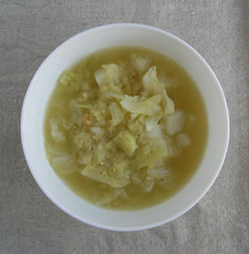 2.鍋にオリーブ油を熱し、じゃがいもとキャベツをさっと炒めて、