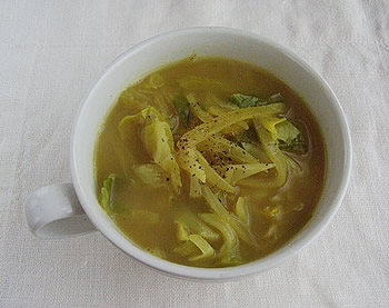 これもキャベツとたまねぎがごっそり食べられる、おいしいスープです。