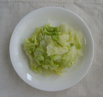 1.キャベツは一口大にちぎり、耐熱容器に入れて、オリーブ油と塩を入れて混ぜる。