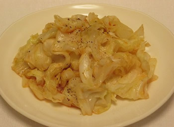 2.フライパンに油を熱し、キャベツをいため、塩を振る。
