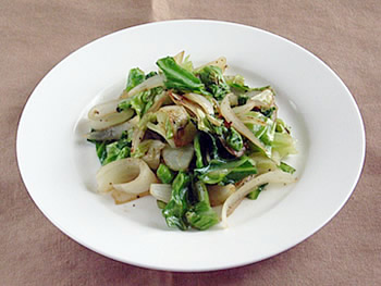 鶏肉をオリーブ油で焼いた後、鶏肉のエキスがたっぷりの油がフライパンに残りますが、これを捨ててはもったいないし、地球環境的にもよくないと思い、キャベツと玉ねぎ炒めを作りました。と~っても美味しかったです!感激!じゃがいもやさやいんげん等でも美味しいと思いますよ。野菜もたっぷり頂きましょう!