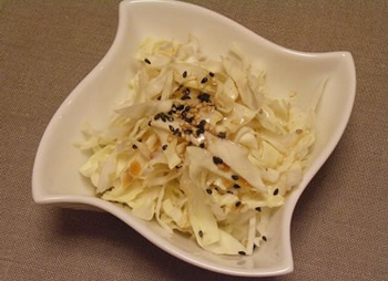 キャベツの千切りに、お酢としょうゆをかけただけ!それだけでも十分美味しいのですが、黒ゴマをトッピングすると、香ばしさも加わって、これまた最高に美味い!バクバクいけちゃいます。キャベツと黒ゴマの相性は抜群です!(色も対照的できれいなのかも)