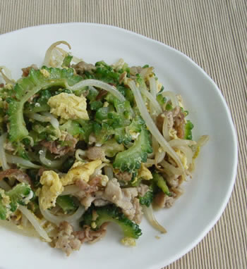 うまい!大好き!ゴーヤは薄く切って、塩を振って20~30分位放置しておくと、苦味がなくなります。でもちょっと苦いくらいがいいんだよね~