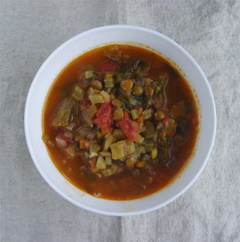 3.レンズ豆を入れて、さらに30分煮込み、最後にレタスを入れて煮こみ、塩、こしょうで味を調える。