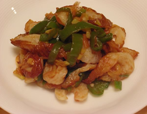 1.ちくわは、幅5mm位の斜め薄切り、長ねぎは幅3mmの小口切り、ピーマンは縦半分に切り、へたとたねを切り落としそのあと、横に5mm幅に切る。
