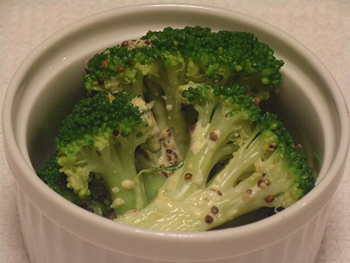 2.マヨネーズと粒マスタードを混ぜて、ブロッコリーをあえる。