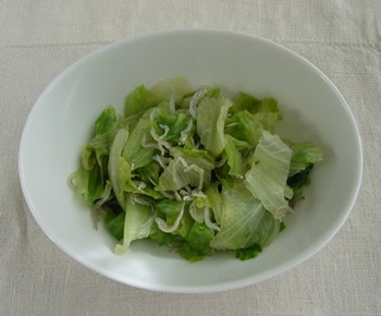 2.レタスがクタッとなったら、ちりめんじゃこを入れて、ひと混ぜして火を止める。