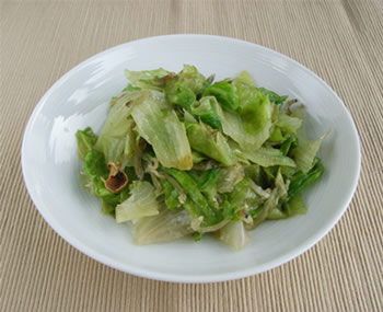 2.フライパンにサラダ油、じゃこ、しょうがを入れて火にかけ、熱くなったらレタスを加える。