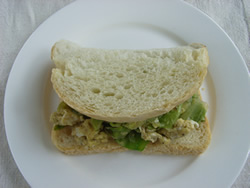 パンにはさんでも。この場合は、バターの風味を生かしたいので、にんにくは入れないほうがいいかも。パンにバターをたっぷり塗ろう。