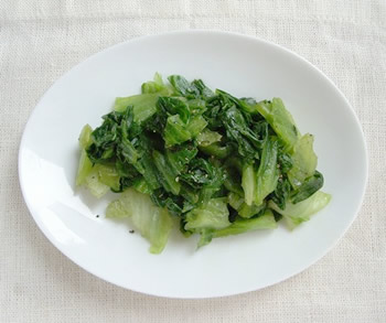 3.レタスがしなっとしたら、塩、こしょうを振って味を調える。