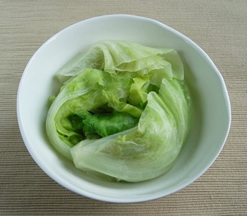 2.鍋に水を入れ、沸騰したら、塩とレタスを入れて、1分程ゆでる。