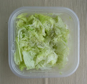 最初にオリーブ油を振っておけば、レタスから水気が出ず、時間が経ってもシャキシャキのまま食べられます。