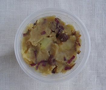 5.さつまいもが十分柔らかくなったら、はちみつと、ラム酒につけたレーズンを入れる。(好きな方はラム酒のまま入れてもOK)