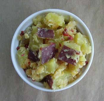 3.ボウルにAを入れて混ぜ、2を温かいうちに加えて和える。(あれば、ピンクペッパーを粗くつぶしてふる。