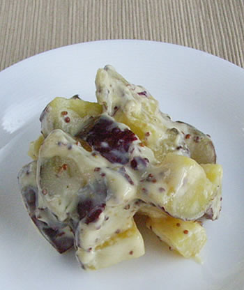 3.ボウルに、はちみつ、マヨネーズ、粒マスタードを混ぜ、さつまいもを入れてあえる。