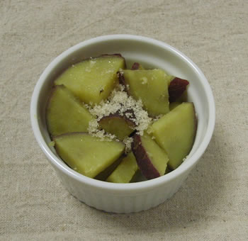 3.さつまいもがやわらかくなったら、器に盛り、三温糖をかけて食べる。