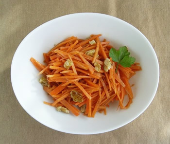 1.にんじんは皮をむいてせん切りにする。くるみは粗く刻む。